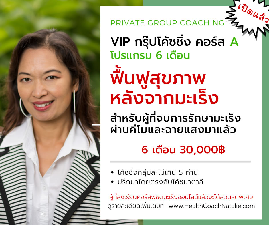 | Course July-C | กรุ๊ปโค้ชชิ่ง พิชิตมะเร็งด้วยธรรมชาติ - สำหรับผู้ที่เป็นมะเร็งแต่ไม่เคยได้รับยาคีโมมาก่อน | วันศุกร์ | 20:00 - 21:30 น. |